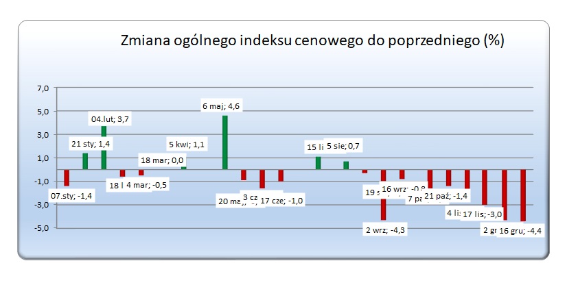 Aukcja z dnia 16.12.2025 r. zakończyła się spadkiem, ogólny indeks cenowy w stosunku do poprzedniej aukcji i osiągnął poziom - 4,4 %. Średnia cena podczas aukcji ukształtowała się na poziomie 3,341 USD/t. Podczas aukcji największy wzrost ceny wystąpił w przypadku laktozy + 14,4 %, największy spadek natomiast w przypadku pełnego mleka w proszku - 5,7 %. Wyniki ostatniej sesji są następujące: |